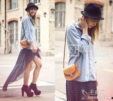 牛仔长裙的搭配图片展示